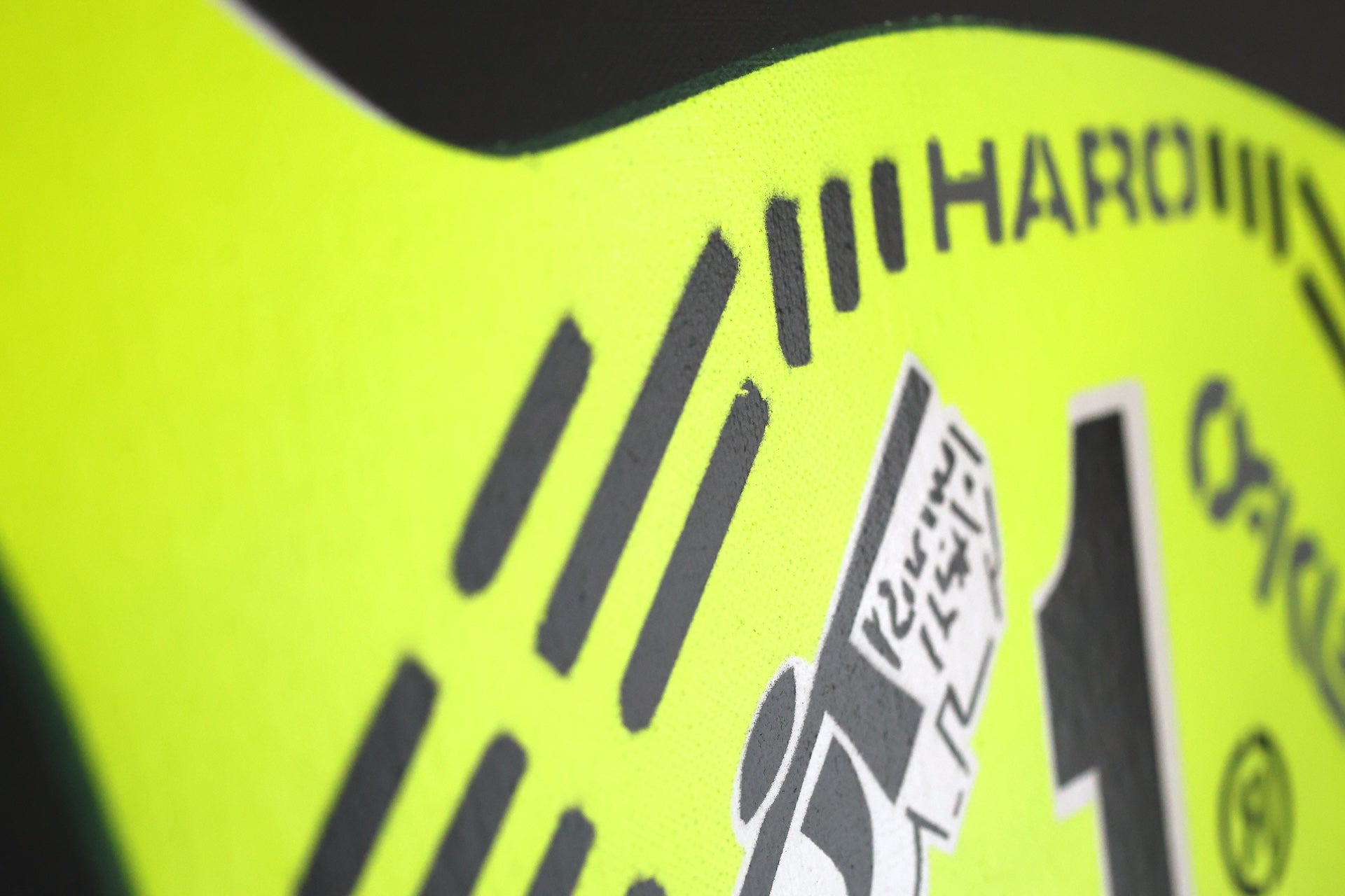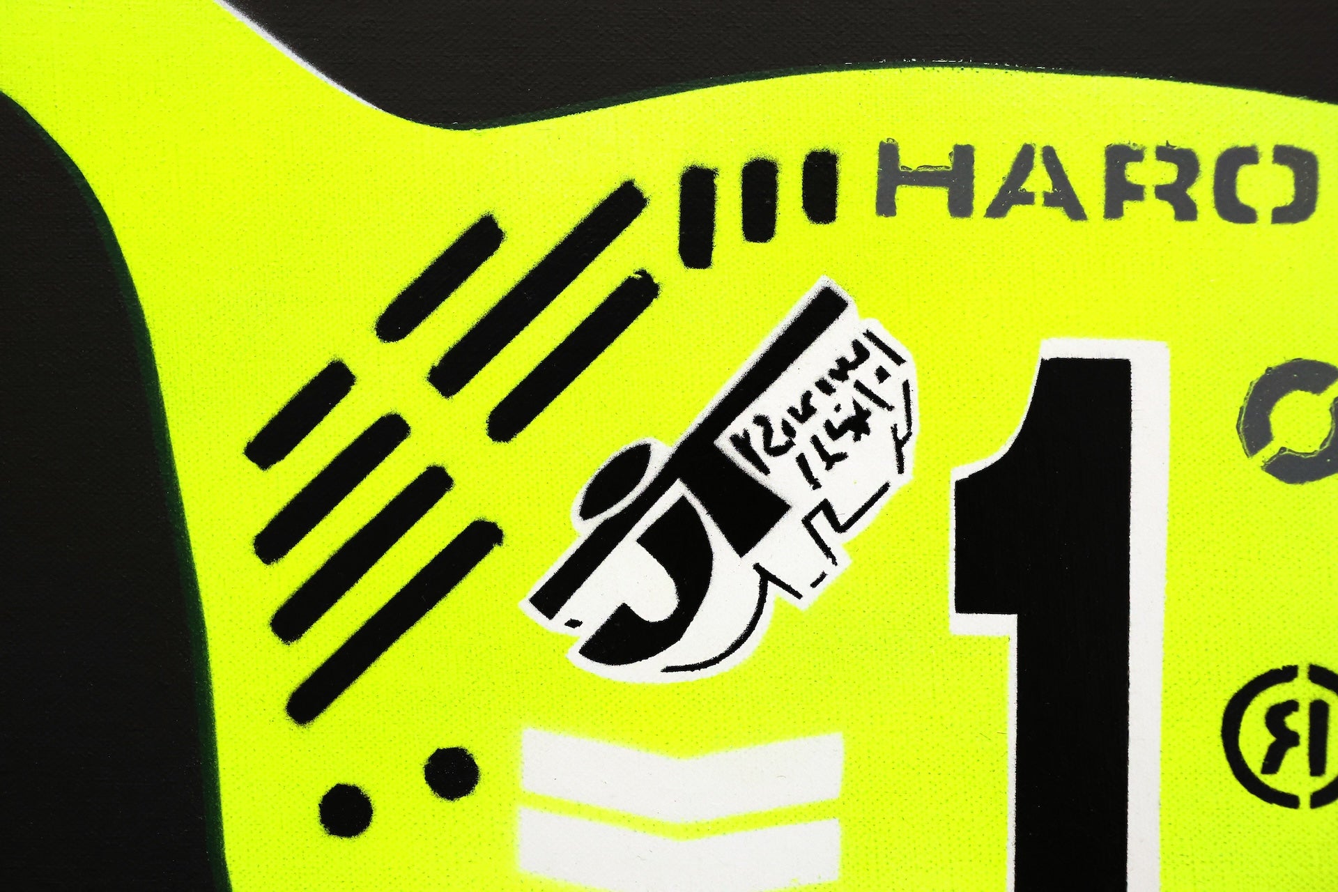 Painted Haro Race Plate Green Grey Black On Canvas 60cm x 50cm